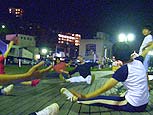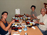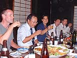 After a 3-hour ride arrive Tejo, Claudia and Oseki-san in Tabira. There they take the specially chartered boat to Hirado. About 28 hours after leaving Holland they arrive in Hirado harbour where they are welcomed by the 12xHolland organization and other citizens of Hirado. On the welcome-party the participators meet with their host: for Claudia this are mr. Kasuya (ex-director of the Hirado elementary school) and ms. Iwamoto (art teacher at the Hirado junior high school); for Tejo this are ms. Machida Noriko and the 3B Gymnastic club.