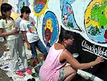 Claudia travels, with translator Tycho, to the small and local elementary school of Ohkawara. Together with about 20 students (6-12 years) she paints a 30 meter long wall. Today Tejo visits the old peoples house Wadatsumi-no-Sato where he presents a body workshop assisted by Machida Noriko-san and translator Tamura Miyuki-san. Tejo, who used the opportunity to do his personal training in the large hall of the Hokubu Kouminkan (northern community centre) in the afternoon, has another shodo calligraphy lesson with Tateishi-sensei in the evening.