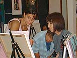 Claudia does her last painting workshop at the Hirado junior highschool with assistance of the teacher ms. Iwamoto. Today, Tejo has a day off.
