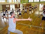 Tejo and Claudia present a combined workshop at the Hirado elementary school (3rd grade). The children paint on a simple 'shirt' made out of two papers. Next Tejo has another nichibu dance lesson with Kitani-sensei. Around midnight, Georges - Claudia's boyfriend - arrives from Holland in Hirado.