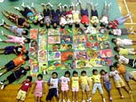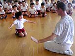In his morning workshop, Tejo teaches the children of the Hikari-no-Sono kindergarten to do some massage with the people of the neighbouring old-peoples house. In the afternoon he has another nichibu dance lesson with Kitani-sensei and in the evening he is working with his 12xHolland dance group. Claudia does a morning and afternoon workshop at the Tsutsumi elementary school with 32 children (11-12 years), where they make drawings of each others silhouette.