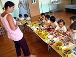 From 10 - 11 AM Tejo does a watershed for the young children of the Hikari-no-Sono kindergarten. Next, together with the kids, Claudia and interpreter Tycho they enjoy the lunch at the school. After the lunch the kids give a taiko percussion show to welcome their special guests, followed by Claudia's workshop. She lets the children paint figures, which are put together into a mobile. Tejo at night has a pre-event for the Haiya Dance festival for tomorrow.